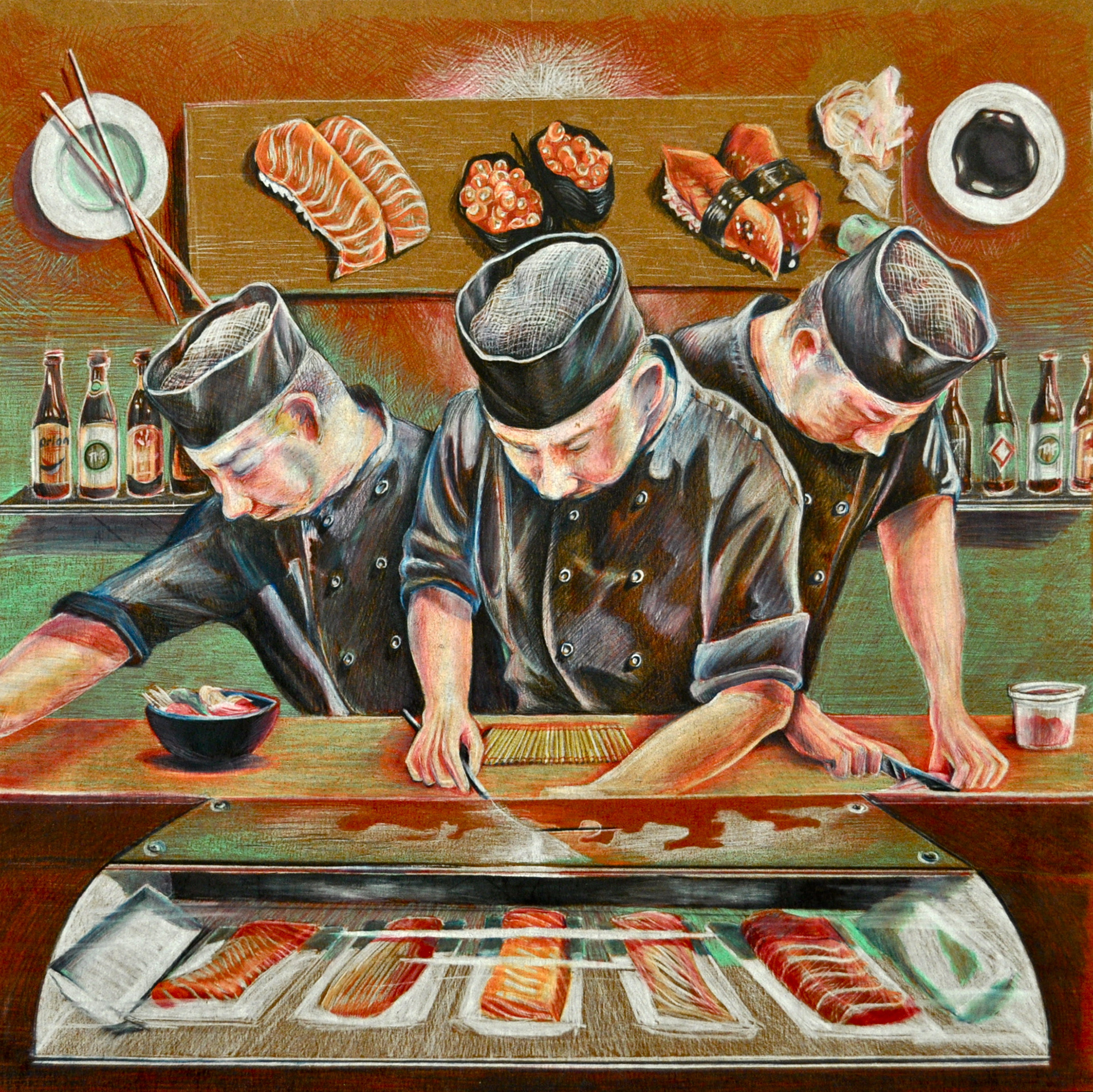 AP Studio Art Concentration, 2014. My statement for the AP: From drawing in my sketchbooks, which never leave my side, to drawing large works at home, art is part of my everyday life. As an artist, I seek to better understand the world around me, and I hope to use my art to investigate my world. The 8 pieces I chose for my portfolio submission are part of a 12-part concentration, investigating the passions of those around me, and how they vary at different stages throughout their lives. Through exploring others’ passions, it assists me in the discovery of my own. The square format of my work acts as a snapshot, framing a moment frozen in time. The concentration’s development from vibrant colors in youth to the absence of color in old age conveys the progression of time and the development of each individual passion. I hope people will see my concentration as a call to recognize the passions of those around us, and in doing so, help us further identify with our own passions.