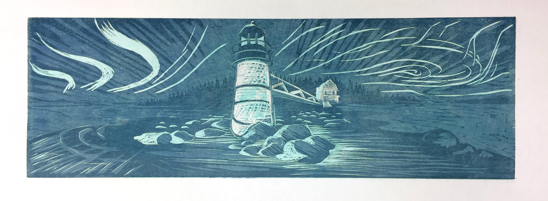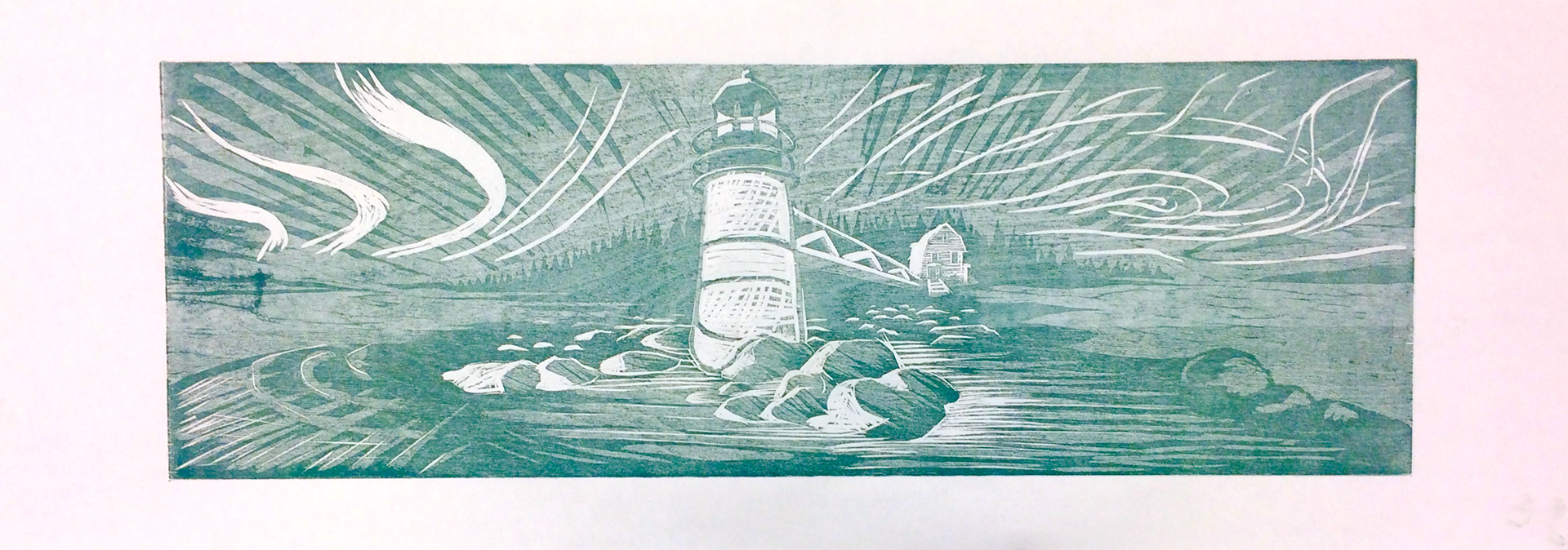 A few woodblock prints of Port Clyde Lighthouse in Maine.